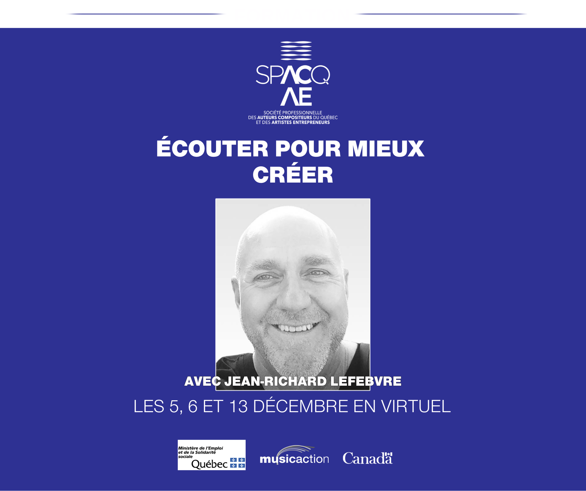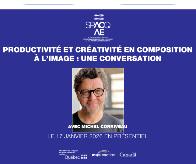 La SPACQ-AE – Société professionnelle des auteurs, compositeurs du Québec et des artistes entrepreneurs. Promouvoir et protéger les intérêts des auteur.e.s et compositeurs.trices de musique ainsi que des artistes entrepreneur.e.s. La SPACQ-AE est une organisation reconnue et influente qui, de concert avec ses alliés, œuvre efficacement pour l’avancement des intérêts de ses membres et de sa communauté.
