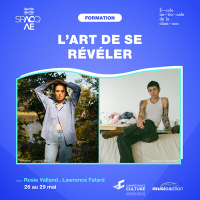 La SPACQ-AE et l’École nationale de la chanson sont heureuses de renouveler leur partenariat et de présenter la nouvelle formation « L’art de se révéler, identité et esthétique en musique ». L’atelier a été développé par l’École nationale de la chanson, en collaboration avec Rosie Valland, diplômée de l’École.