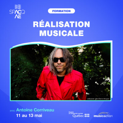 Dès aujourd’hui, les membres de la SPACQ-AE bénéficient d’une priorité d’inscription exclusive pour la formation sur la réalisation musicale avec Antoine Corriveau. Toutes nos formations offrent une opportunité exceptionnelle d’apprendre, de grandir et de se connecter avec d’autres artistes talentueux.ses. Pour ceux et celles qui ne sont pas encore membres de la SPACQ-AE il est toujours temps de le devenir. Des listes d’attente sont également disponibles pour que vous puissiez rejoindre nos ateliers enrichissants.